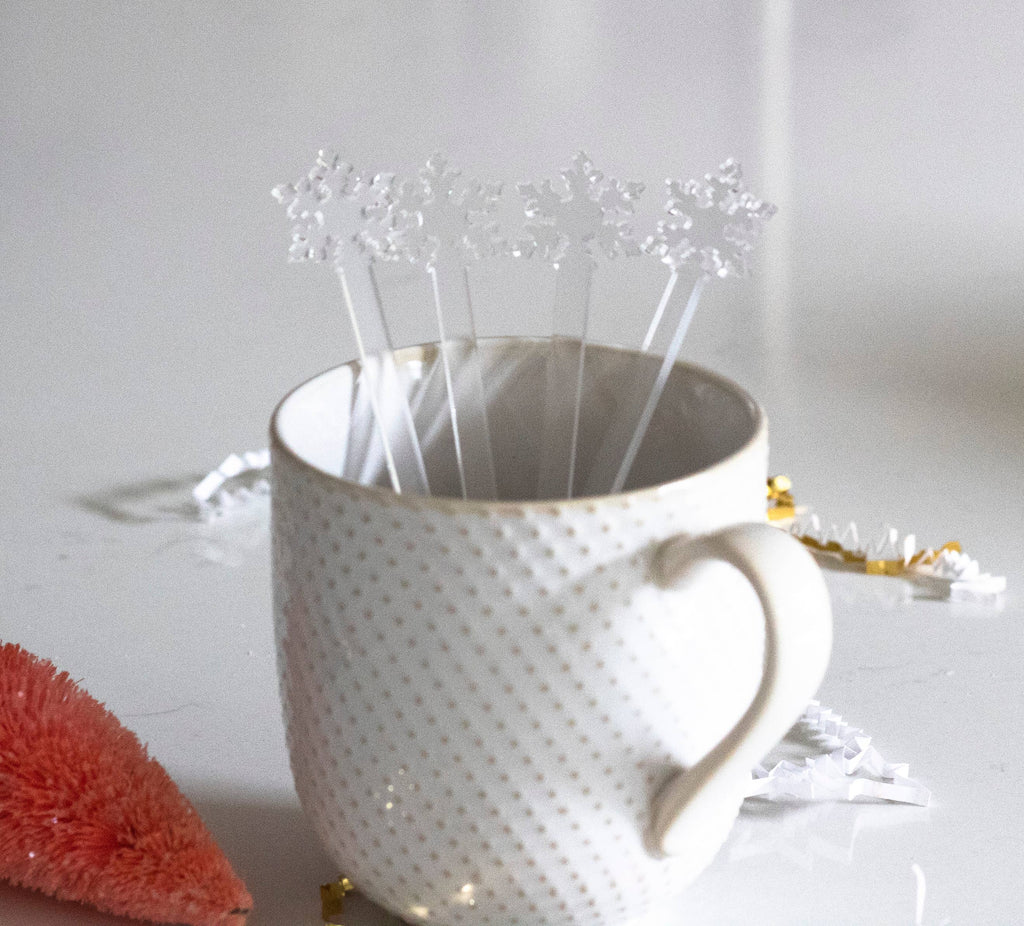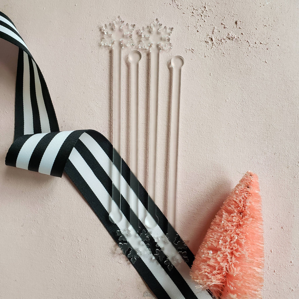 Cheers! Spruce up those drinks, and take your Holiday party to the next level! Laser cut from 1/8" thick acrylic these drink stirrers work perfectly with most glasses and champagne flutes. They measure 6 in tall and come in sets of 4. Don't throw away! These fancy acrylic stir sticks are reusable, and make beautiful gifts!