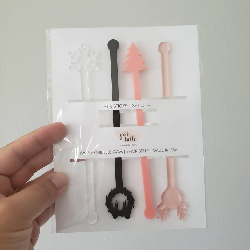 PINK CHRISTMAS ACRYLIC STIR STICKS ASSORTED-BARWARE-MODE-Couture-Boutique-Womens-Clothing