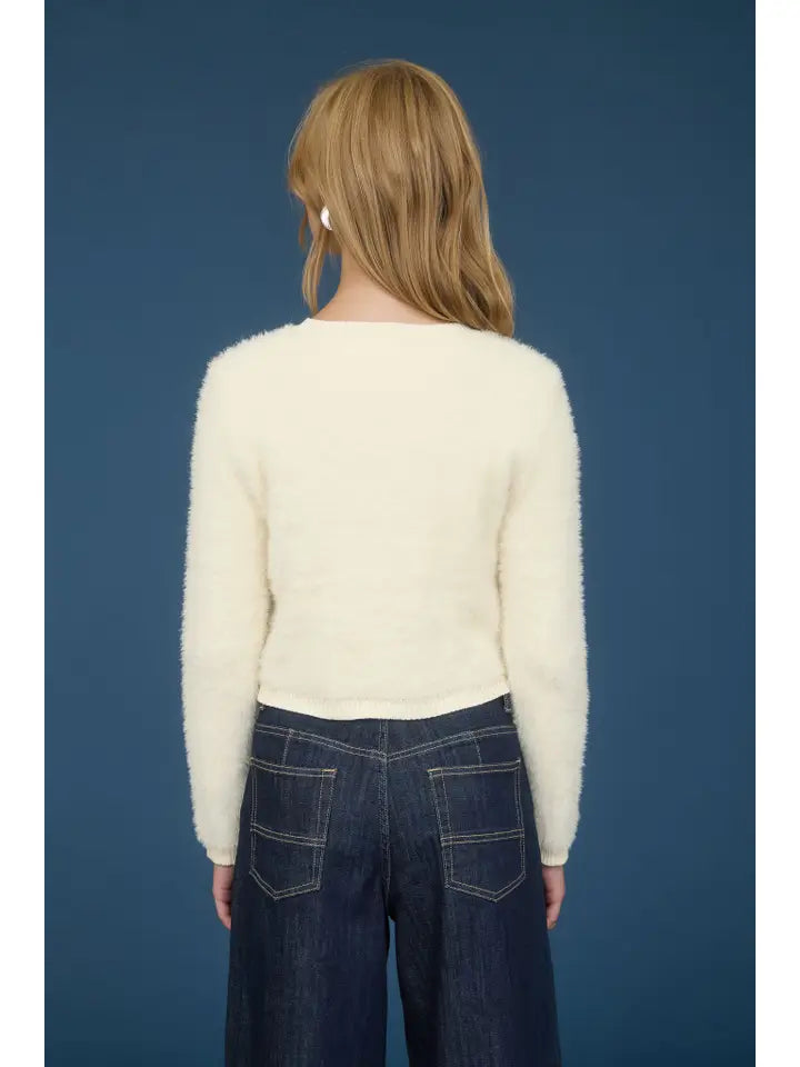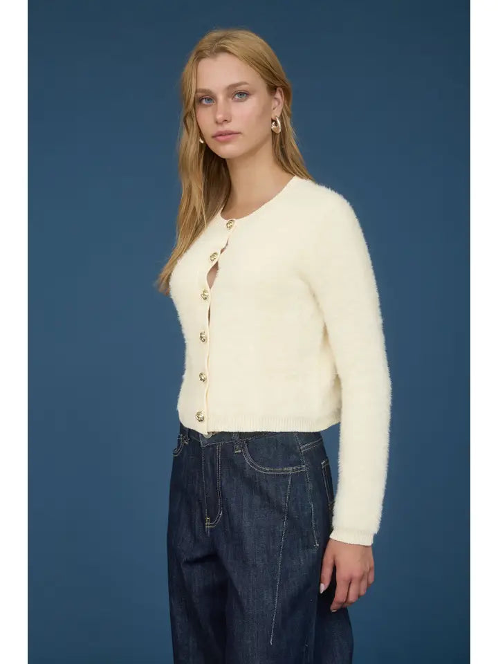 FEELING GOOD BUTTON DOWN FUZZY KNIT CARDIGAN IN LIGHT CREAM