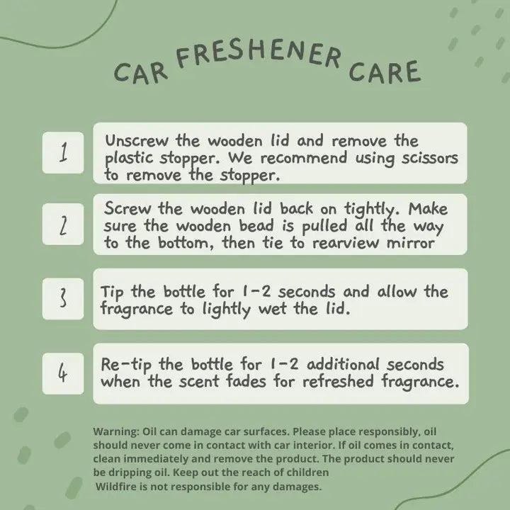 Elevate your daily drive with this luxurious air freshener. These fresheners not only make your car smell amazing but also last for 50+ days with typical use. Each air freshener is made from sustainable materials, featuring a glass bottle with a wooden cap. You have the freedom to adjust the strength of the fragrance by simply tipping the bottle to refresh the aroma in your vehicle as needed.