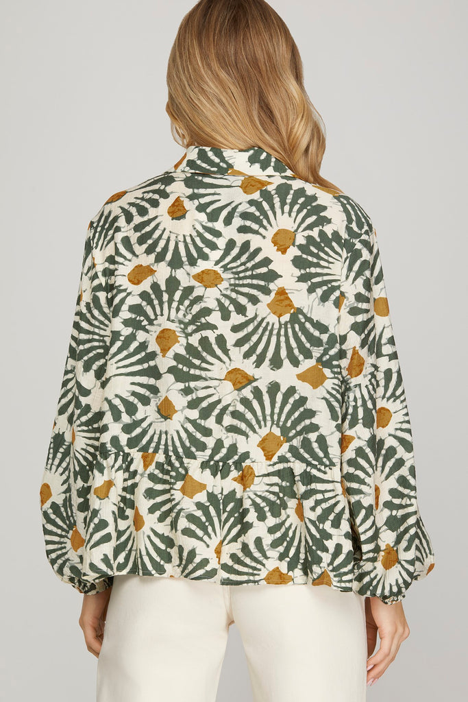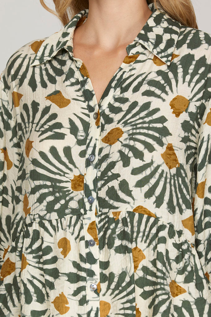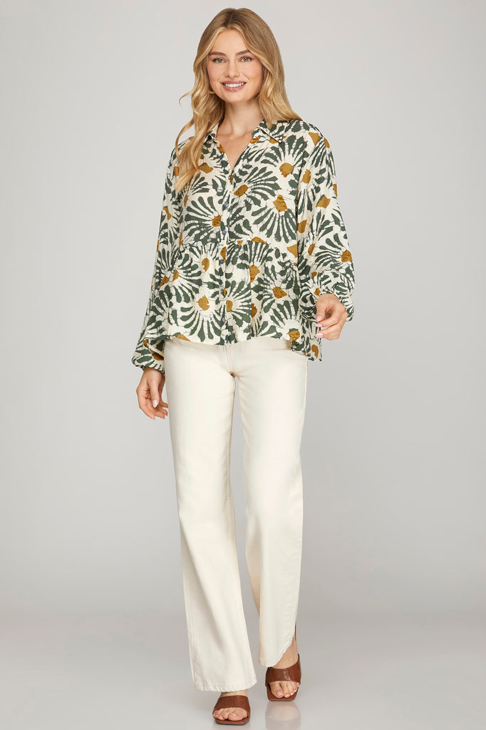MAIZEY LONG SLEEVE BUTTON DOWN COLLARED TOP IN OLIVE